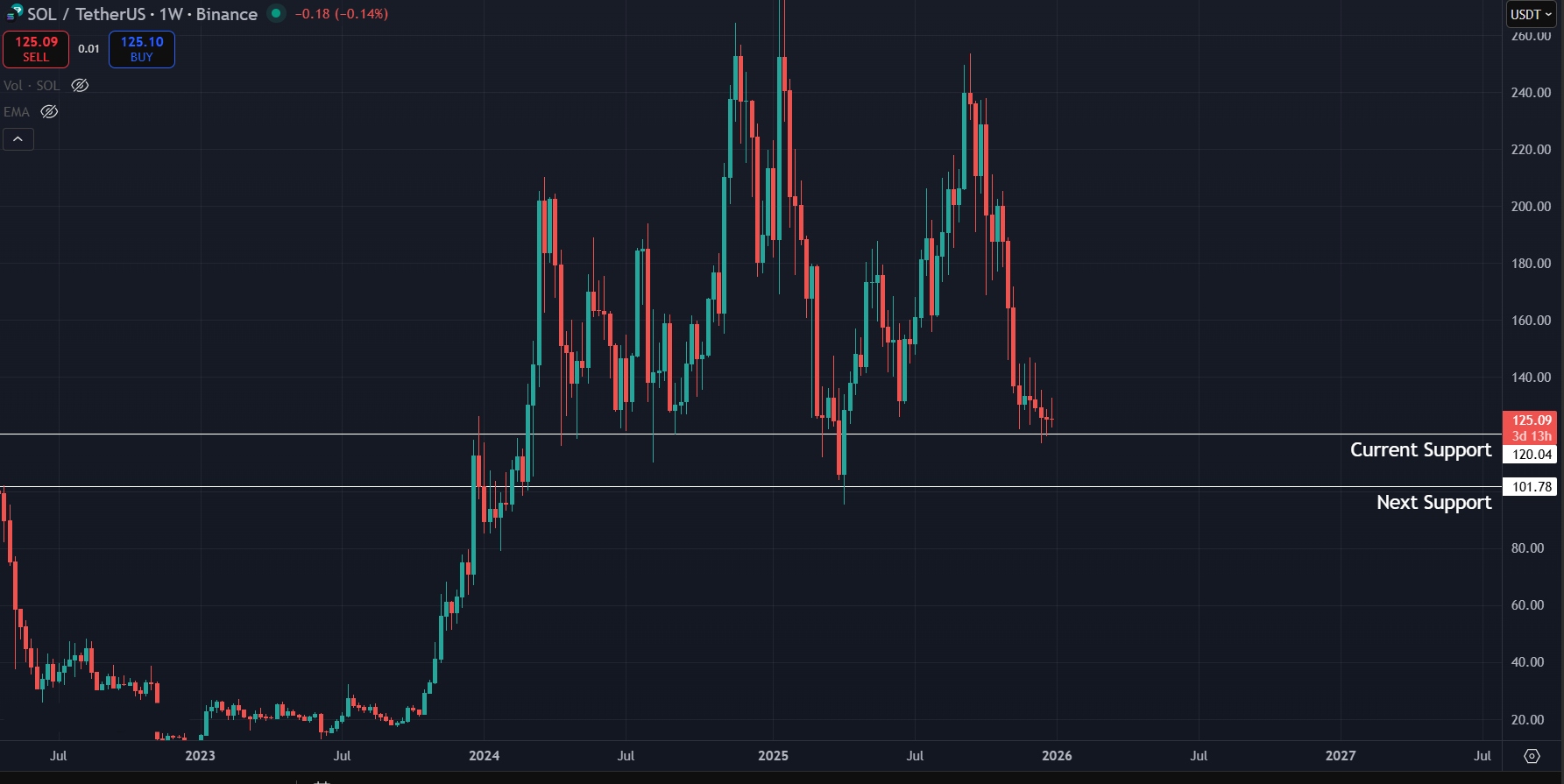 Solana is currently trading near $125 and continues to struggle for momentum as the market remains stuck in a tight range. As we highlighted in our previous analysis, the price has successfully held the $120 support level for over a month now, yet the bulls have not found the strength required to trigger a meaningful trend reversal. This lack of clear direction keeps the asset trapped between firm resistance at $145 and the established floor at $120 while Bitcoin also consolidates and the broader market experiences a seasonal slowdown. Because of this holiday lull, Solana has remained relatively stagnant. With that in mind, lets take a look at the latest SOL charts to see where the price could be headed in the coming days.
